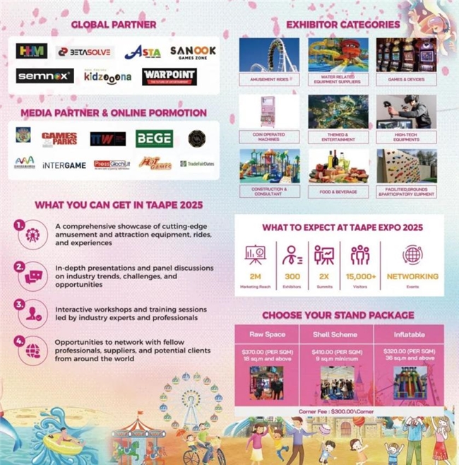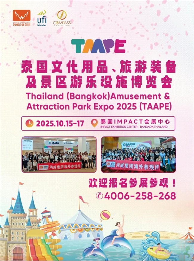 由中国动漫集团有限公司、泰国COMPASS集团、广东鸿威会展集团联合主办的2025泰国文化用品、旅游装备及景区游乐设施博览会(TAAPE2025)是泰国知名游乐休闲类展会。该展会设立了水上装备、游乐设施、户外游乐、电子游乐设备等多个主题,展出内容丰富多样,包括IP授权与合作展区、衍生品设计与制造展区、手办与模型展区等多个展区。此次展会恰逢中泰建交50周年重要历史时刻,依托泰国作为东盟枢纽的区位优势,创新性地将传统文化用品、旅游装备与前沿元宇宙技术相结合,打造了全方位、多层次的文化贸易交流平台。