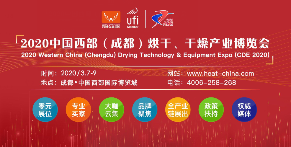 最后,诚挚邀请各媒体人和专业观众拨冗光临2020年3月7-9日中国西部(成都)烘干、干燥产业博览会,共享平台和商机,拓展市场,合作共赢!