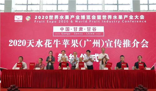 9月25日,由甘谷县人民政府和天水市农业农村局牵头,甘谷县农业农村局和甘谷县果品产业服务中心承办的中国•甘肃•甘谷2020天水花牛苹果展示展销及宣传推介活动在广州•广交会展馆B区11.3馆隆重举行。