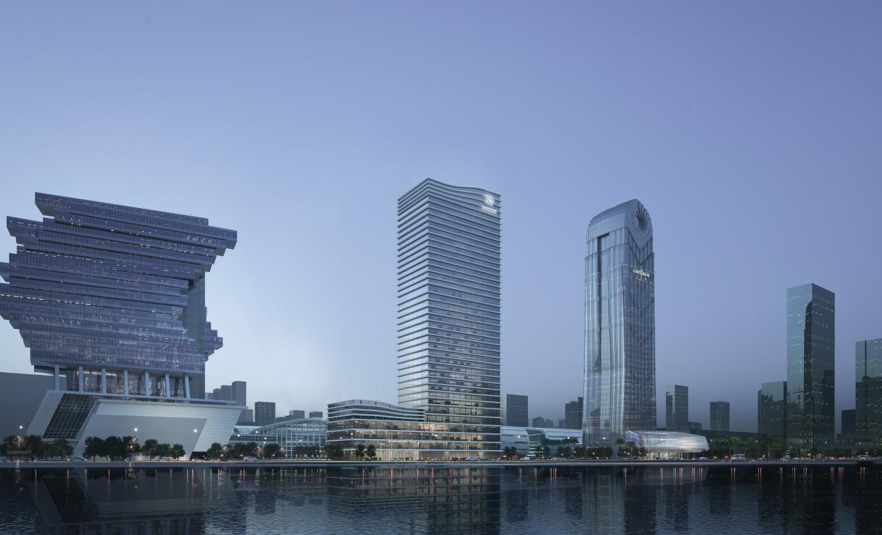 广交会展馆四期项目于2020年12月正式开工建设,是广交会展馆发展史上最大的扩建工程,包含D区展馆、会议中心和指挥中心。指挥中心由1栋171.9米高的塔楼和4层裙楼组成,是集会议承接与日常办公于一体的超高层建筑,既能满足会展产业链个性化办公需求,也可为会展活动提供高效便捷的会议服务。
